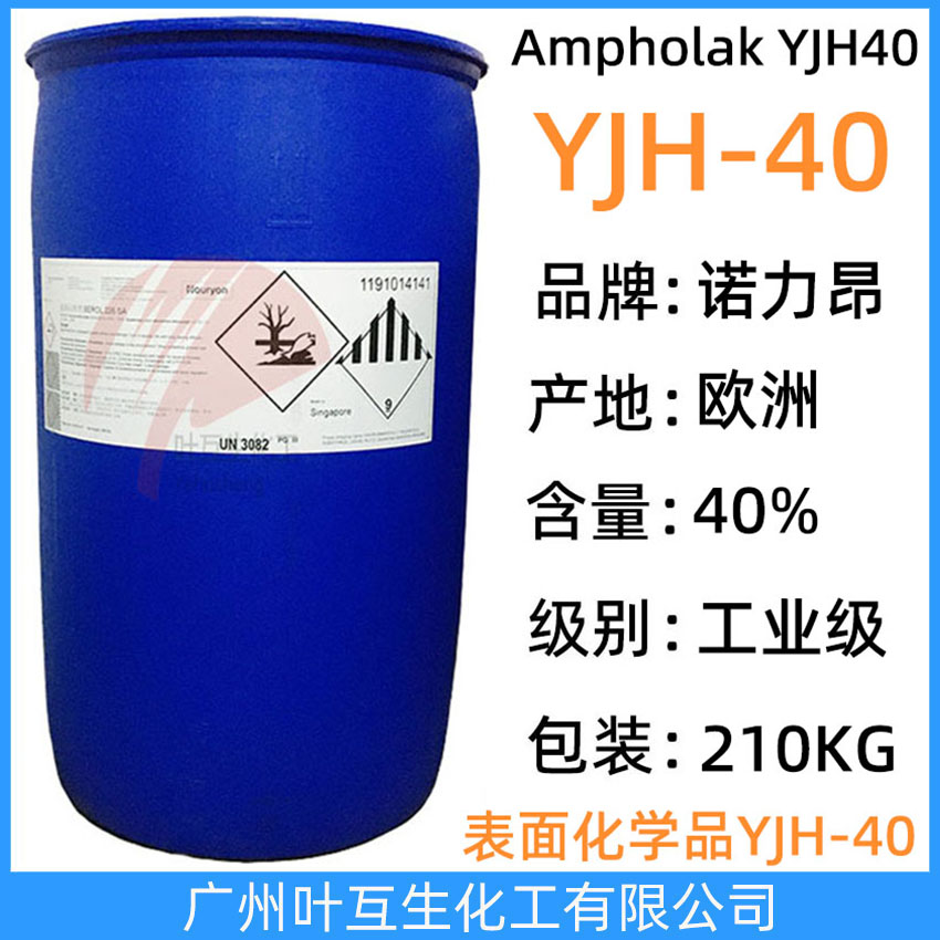 Ampholak YJH-40 是一種兩性的丙酸酯系胺類化合物,通常作為增溶劑、低泡表面活性劑或螯合劑使用。